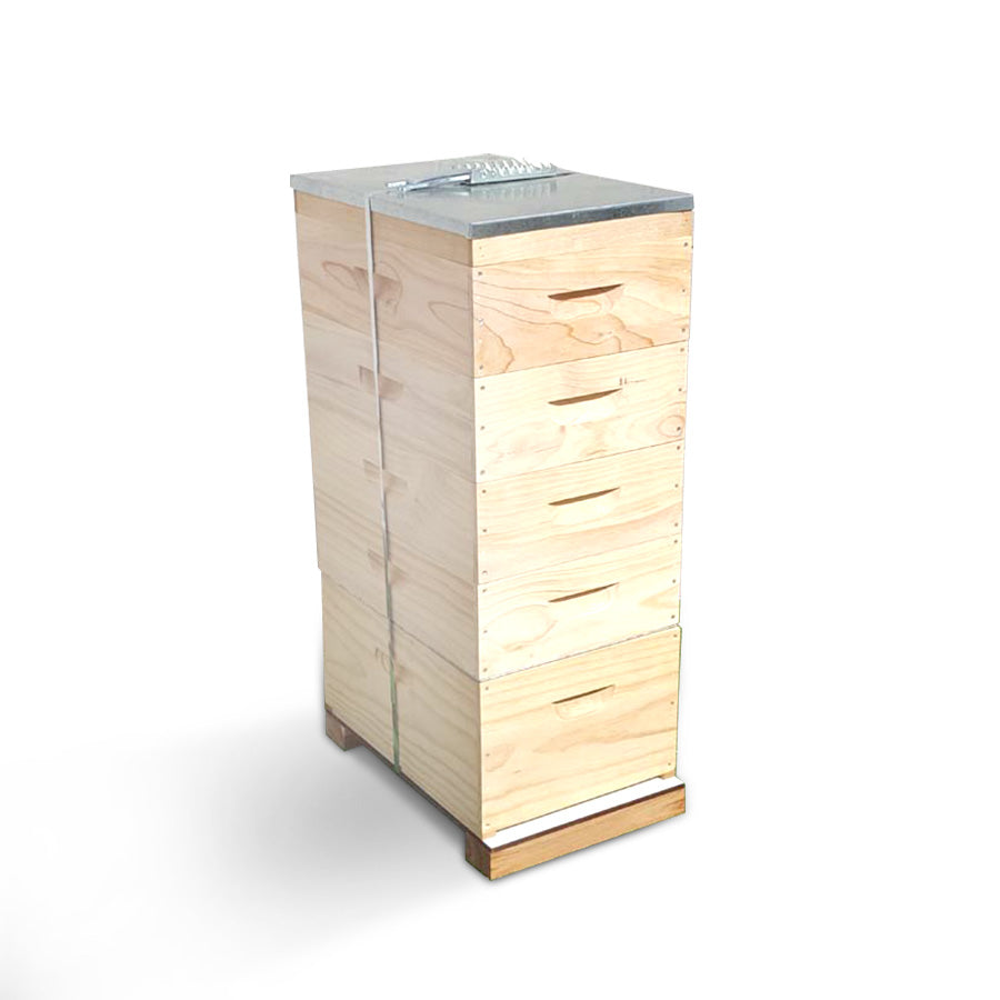 This is the complete beehive starter kit with 1 full depth box for the brood and 4 ideal size honey Supers.